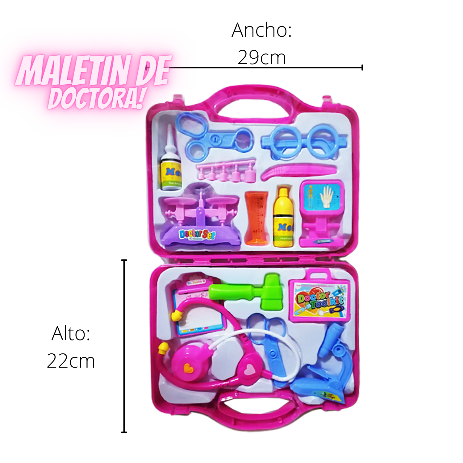 Juego de set mini equipo medico con todos los accesorios, es un lindo regalo para niñas o niños y así incentivarlos a jugar a ser grandes doctores.