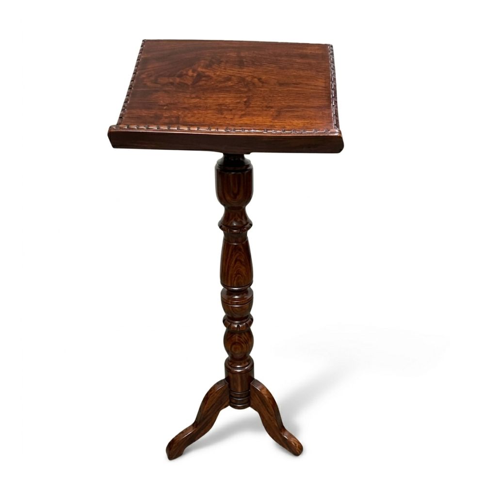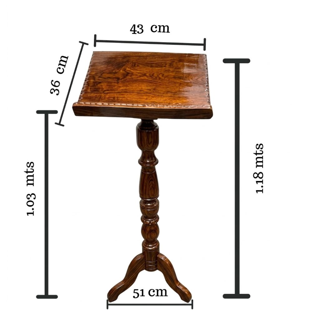 Elegante atril de madera finamente trabajado con acabado laqueado que resalta las vetas naturales. Su diseño robusto con pie tallado lo convierte en una pieza decorativa y funcional indispensable para cualquier espacio.