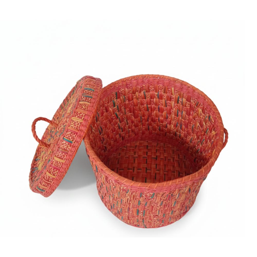 Dale un toque cálido y natural a tus espacios con este cesto de mimbre con tapa multicolor, perfecto para mantener el orden sin perder estilo. Su diseño artesanal combina funcionalidad y decoración, adaptándose a dormitorios, salas, baños u oficinas.