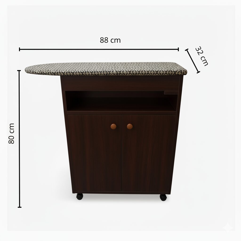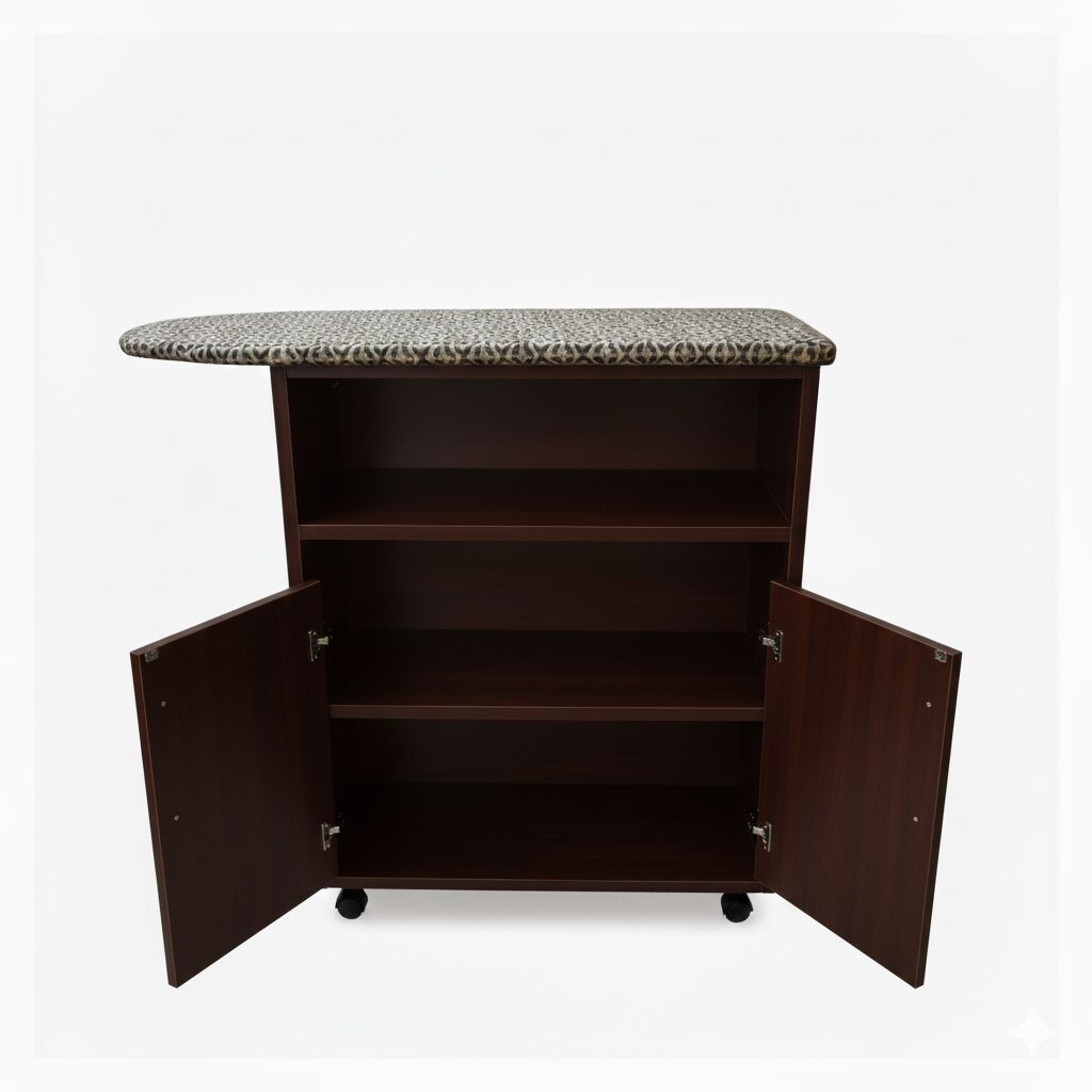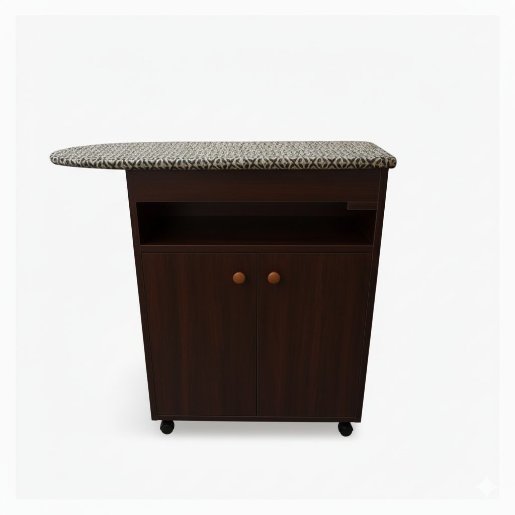 - Mesa de planchado rodante con gabinetes para guardar lo que necesites