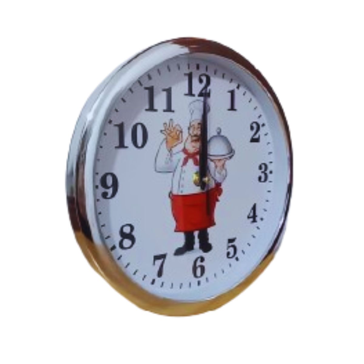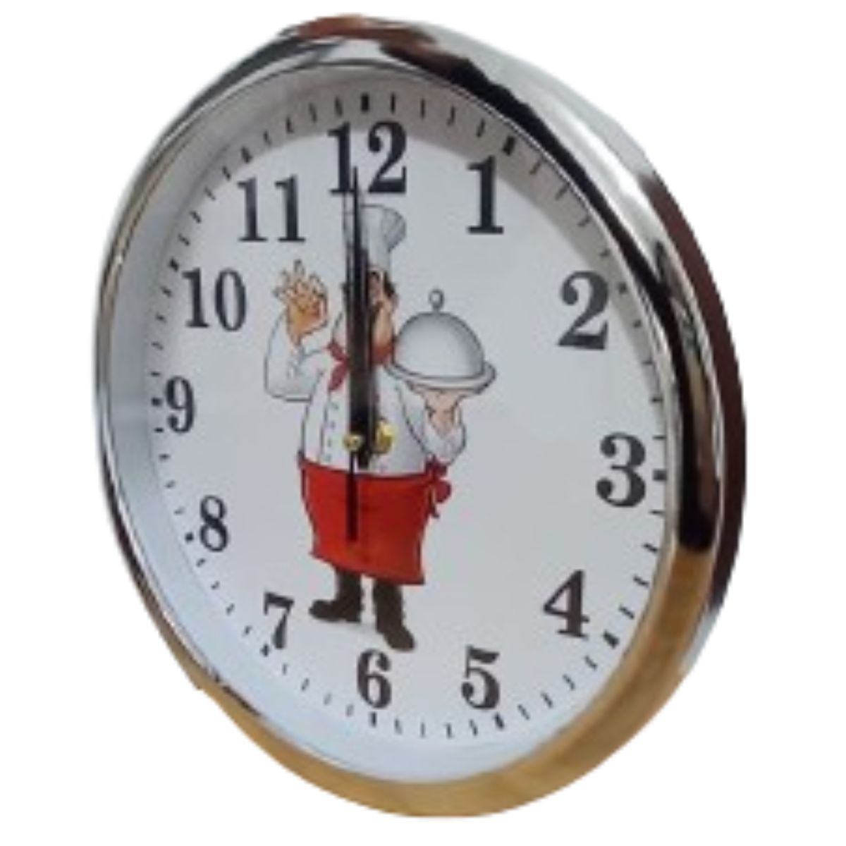 Este reloj de pared es perfecto para cualquier cocina, combinando funcionalidad y un toque divertido. Con un marco plateado que aporta un toque moderno y elegante, el reloj presenta un encantador diseño de chef en el centro, ideal para los amantes de la cocina. Su tamaño de 28 cm de diámetro lo hace perfecto para cualquier espacio, permitiéndote mantener la hora con estilo mientras cocinas tus platos favoritos