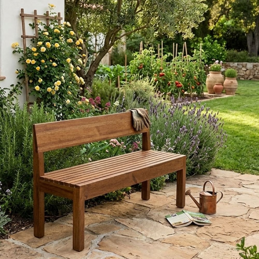 - Material de Calidad: Fabricada con madera tornillo seleccionada cuidadosamente, esta banca garantiza resistencia y durabilidad, siendo capaz de soportar los rigores del uso diario y las condiciones climáticas exteriores.