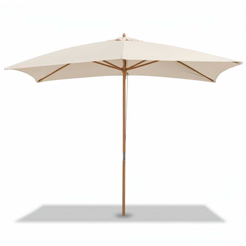 - Sombrilla de Jardín, terraza o para la playa Grande con estructura en madera maciza, en tela de lona en PVC, color crema.