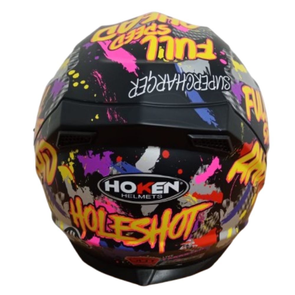 Casco integral Sharger Bob multicolor con visor tornazolado azul. Diseño único, máxima protección y confort para tus viajes en moto.