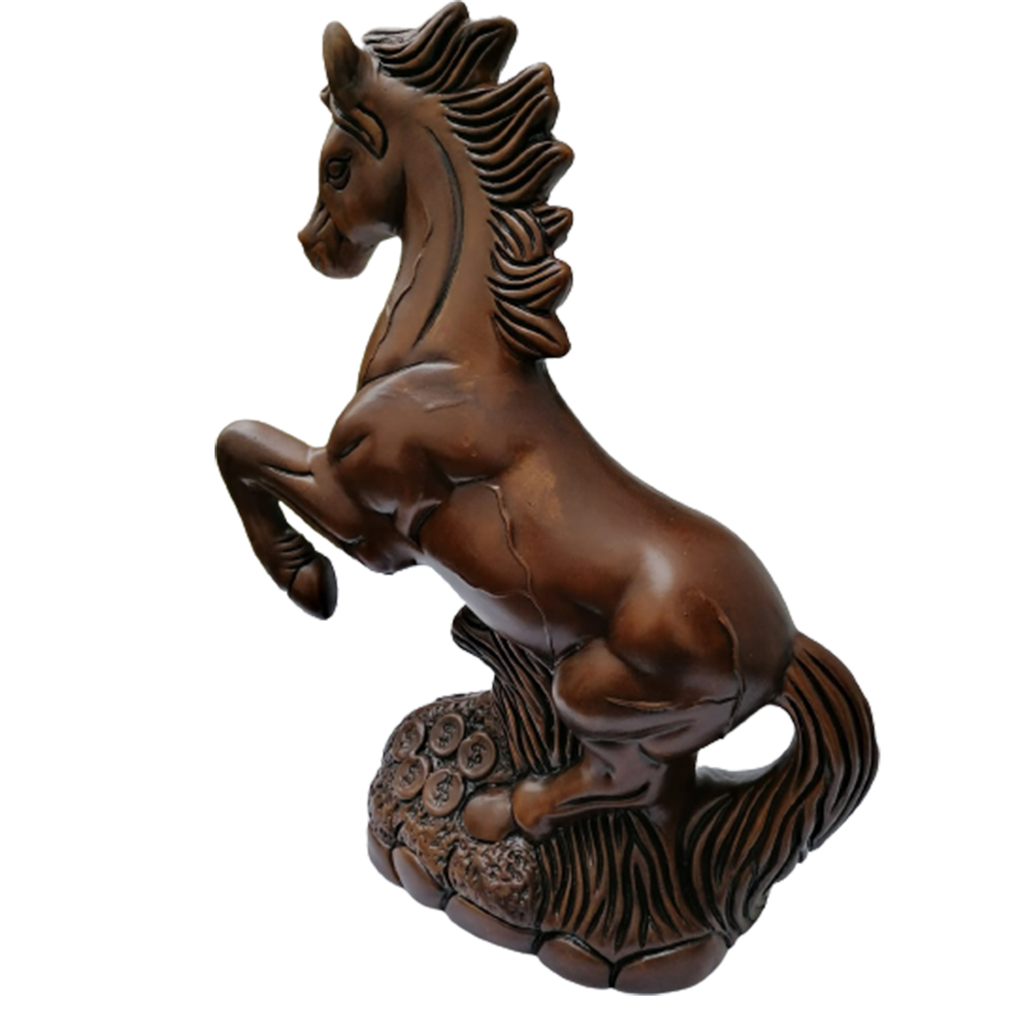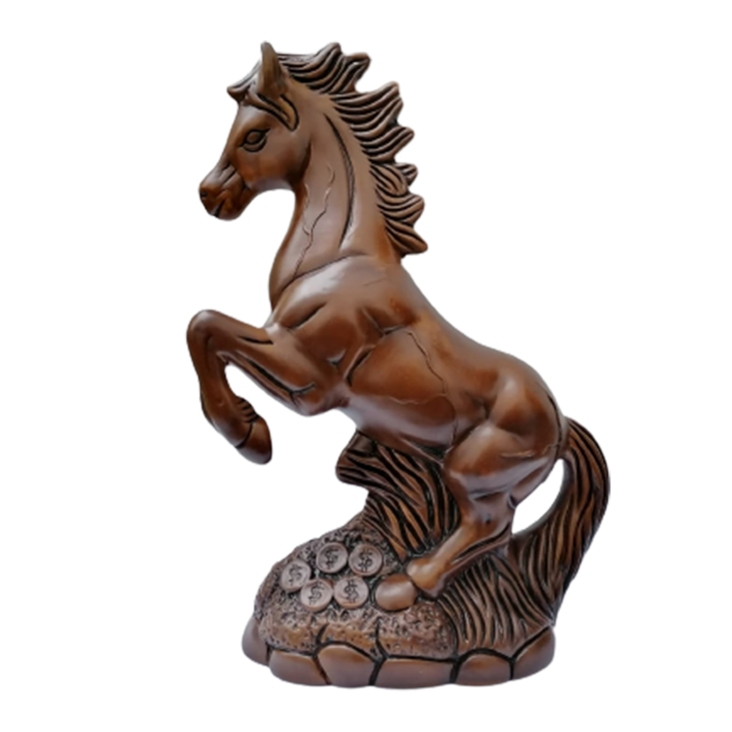 Hermoso Caballo del Triunfo, con un color entre marrón con destellos dorados, esta paleta de colores hace un lindo contraste entre la mayoría de Decoraciones de su hogar, Dándole un toco Chip y Elegante al ambiente.